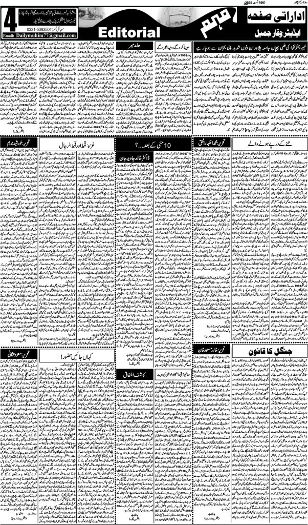 اخبار روزنامہ مہم 8 اگست 2025 dailymuhim اگست 8, 2025 About The Author dailymuhim See author's posts Continue Reading Previous: روزنامہ مہم 7 اگست 2025Next: روزنامہ مہم 9 اگست 2025 جواب دیں جواب منسوخ کریںآپ کا ای میل ایڈریس شائع نہیں کیا جائے گا۔ ضروری خانوں کو * سے نشان زد کیا گیا ہےتبصرہ * نام * ای میل * ویب سائٹ اس براؤزر میں میرا نام، ای میل، اور ویب سائٹ محفوظ رکھیں اگلی بار جب میں تبصرہ کرنے کےلیے۔ Related Stories روزنامہ مہم 19 جنوری 2026 اخبار روزنامہ مہم 19 جنوری 2026 جنوری 19, 2026 روزنامہ مہم 17 جنوری 2026 اخبار روزنامہ مہم 17 جنوری 2026 جنوری 18, 2026 روزنامہ مہم 15 جنوری 2026 اخبار روزنامہ مہم 15 جنوری 2026 جنوری 15, 2026