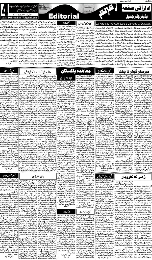 اخبار روزنامہ مہم 9 اگست 2025 dailymuhim اگست 9, 2025 About The Author dailymuhim See author's posts Continue Reading Previous: روزنامہ مہم 8 اگست 2025Next: امن کیلئے حکومت کے ساتھ ہیں‘، وزیراعلیٰ پختونخوا کی سربراہی میں جرگے کا فیصلہ جواب دیں جواب منسوخ کریںآپ کا ای میل ایڈریس شائع نہیں کیا جائے گا۔ ضروری خانوں کو * سے نشان زد کیا گیا ہےتبصرہ * نام * ای میل * ویب سائٹ اس براؤزر میں میرا نام، ای میل، اور ویب سائٹ محفوظ رکھیں اگلی بار جب میں تبصرہ کرنے کےلیے۔ Related Stories روزنامہ مہم 22 اپریل 2026 اخبار روزنامہ مہم 22 اپریل 2026 اپریل 22, 2026 روزنامہ مہم 21 اپریل 2026 اخبار روزنامہ مہم 21 اپریل 2026 اپریل 21, 2026 روزنامہ مہم 20 اپریل 2026 اخبار روزنامہ مہم 20 اپریل 2026 اپریل 20, 2026