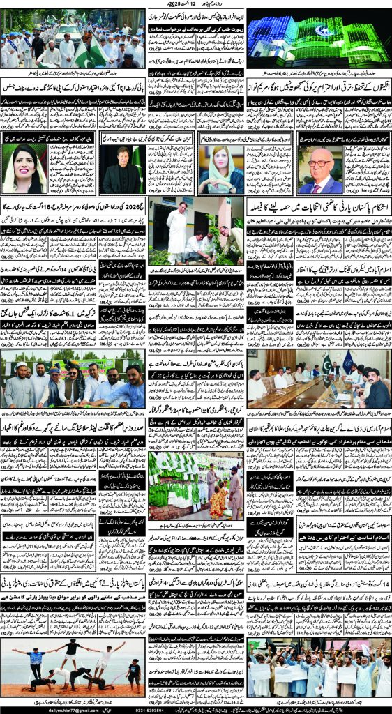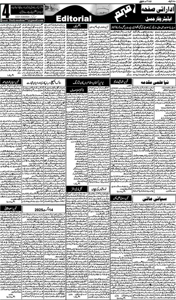 اخبار روزنامہ مہم 12 اگست 2025 dailymuhim اگست 12, 2025 About The Author dailymuhim See author's posts Continue Reading Previous: روزنامہ مہم 11 اگست 2025Next: روزنامہ مہم 14 اگست 2025 جواب دیں جواب منسوخ کریںآپ کا ای میل ایڈریس شائع نہیں کیا جائے گا۔ ضروری خانوں کو * سے نشان زد کیا گیا ہےتبصرہ * نام * ای میل * ویب سائٹ اس براؤزر میں میرا نام، ای میل، اور ویب سائٹ محفوظ رکھیں اگلی بار جب میں تبصرہ کرنے کےلیے۔ Related Stories روزنامہ مہم 19 جنوری 2026 اخبار روزنامہ مہم 19 جنوری 2026 جنوری 19, 2026 روزنامہ مہم 17 جنوری 2026 اخبار روزنامہ مہم 17 جنوری 2026 جنوری 18, 2026 روزنامہ مہم 15 جنوری 2026 اخبار روزنامہ مہم 15 جنوری 2026 جنوری 15, 2026