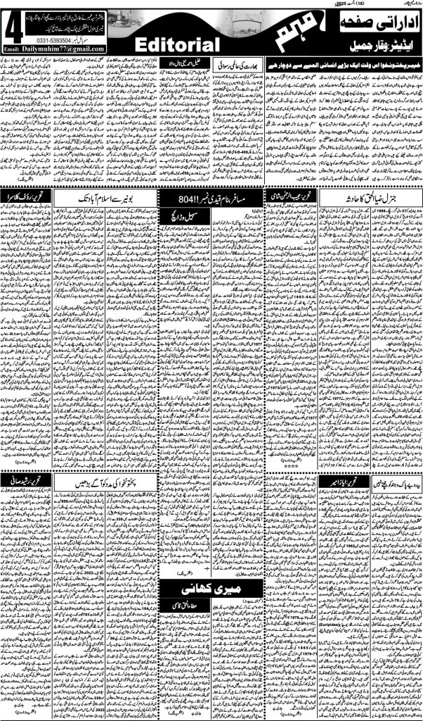 اخبار روزنامہ مہم 18 اگست 2025 dailymuhim اگست 18, 2025 About The Author dailymuhim See author's posts Continue Reading Previous: روزنامہ مہم 16 اگست 2025Next: روزنامہ مہم 19 اگست 2025 جواب دیں جواب منسوخ کریںآپ کا ای میل ایڈریس شائع نہیں کیا جائے گا۔ ضروری خانوں کو * سے نشان زد کیا گیا ہےتبصرہ * نام * ای میل * ویب سائٹ اس براؤزر میں میرا نام، ای میل، اور ویب سائٹ محفوظ رکھیں اگلی بار جب میں تبصرہ کرنے کےلیے۔ Related Stories روزنامہ مہم 19 جنوری 2026 اخبار روزنامہ مہم 19 جنوری 2026 جنوری 19, 2026 روزنامہ مہم 17 جنوری 2026 اخبار روزنامہ مہم 17 جنوری 2026 جنوری 18, 2026 روزنامہ مہم 15 جنوری 2026 اخبار روزنامہ مہم 15 جنوری 2026 جنوری 15, 2026