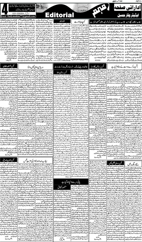 اخبار روزنامہ مہم 30 اگست 2025 dailymuhim اگست 30, 2025 About The Author dailymuhim See author's posts Continue Reading Previous: روزنامہ مہم 29 اگست 2025Next: روزنامہ مہم 1 ستمبر 2025 جواب دیں جواب منسوخ کریںآپ کا ای میل ایڈریس شائع نہیں کیا جائے گا۔ ضروری خانوں کو * سے نشان زد کیا گیا ہےتبصرہ * نام * ای میل * ویب سائٹ اس براؤزر میں میرا نام، ای میل، اور ویب سائٹ محفوظ رکھیں اگلی بار جب میں تبصرہ کرنے کےلیے۔ Related Stories روزنامہ مہم 27 نومبر 2025 اخبار روزنامہ مہم 27 نومبر 2025 نومبر 27, 2025 روزنامہ مہم 25 نومبر 2025 اخبار روزنامہ مہم 25 نومبر 2025 نومبر 25, 2025 روزنامہ مہم 24 نومبر 2025 اخبار روزنامہ مہم 24 نومبر 2025 نومبر 24, 2025