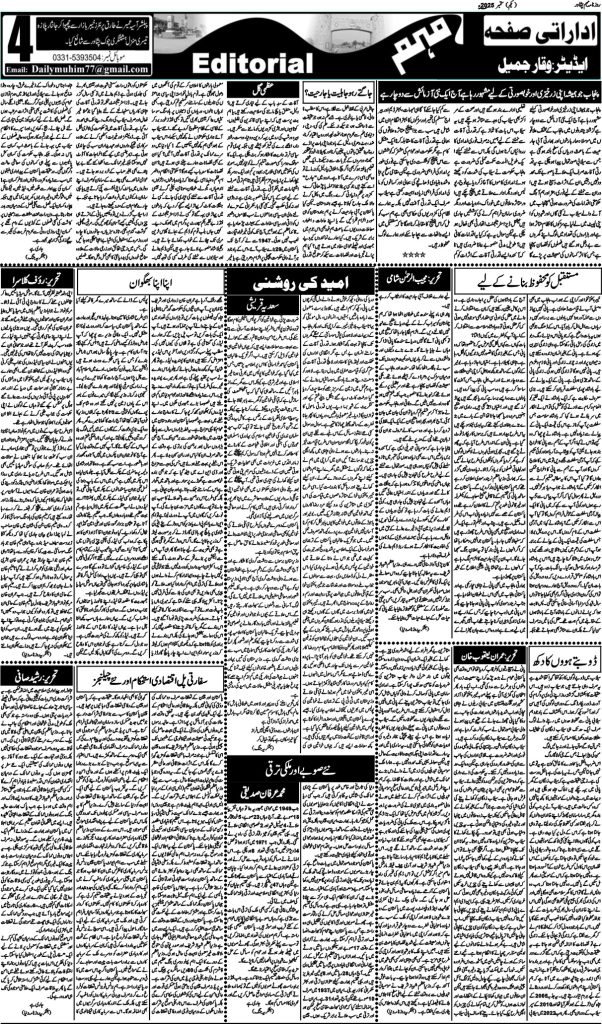 اخبار روزنامہ مہم 1 ستمبر 2025 dailymuhim ستمبر 1, 2025 About The Author dailymuhim See author's posts Continue Reading Previous: روزنامہ مہم 30 اگست 2025Next: روزنامہ مہم 2 ستمبر 2025 جواب دیں جواب منسوخ کریںآپ کا ای میل ایڈریس شائع نہیں کیا جائے گا۔ ضروری خانوں کو * سے نشان زد کیا گیا ہےتبصرہ * نام * ای میل * ویب سائٹ اس براؤزر میں میرا نام، ای میل، اور ویب سائٹ محفوظ رکھیں اگلی بار جب میں تبصرہ کرنے کےلیے۔ Related Stories روزنامہ مہم 19 جنوری 2026 اخبار روزنامہ مہم 19 جنوری 2026 جنوری 19, 2026 روزنامہ مہم 17 جنوری 2026 اخبار روزنامہ مہم 17 جنوری 2026 جنوری 18, 2026 روزنامہ مہم 15 جنوری 2026 اخبار روزنامہ مہم 15 جنوری 2026 جنوری 15, 2026