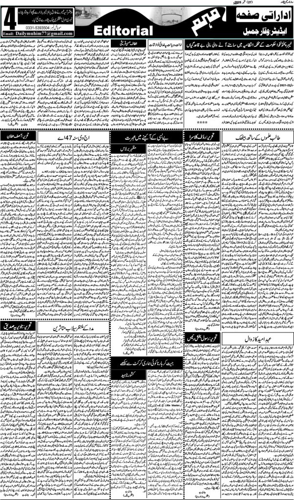 اخبار روزنامہ مہم 27 ستمبر 2025 dailymuhim ستمبر 27, 2025 About The Author dailymuhim See author's posts Continue Reading Previous: روزنامہ مہم 26 ستمبر 2025Next: روزنامہ مہم 29 ستمبر 2025 جواب دیں جواب منسوخ کریںآپ کا ای میل ایڈریس شائع نہیں کیا جائے گا۔ ضروری خانوں کو * سے نشان زد کیا گیا ہےتبصرہ * نام * ای میل * ویب سائٹ اس براؤزر میں میرا نام، ای میل، اور ویب سائٹ محفوظ رکھیں اگلی بار جب میں تبصرہ کرنے کےلیے۔ Related Stories روزنامہ مہم 18 اپریل 2026 اخبار روزنامہ مہم 18 اپریل 2026 اپریل 18, 2026 روزنامہ مہم 17 اپریل 2026 اخبار روزنامہ مہم 17 اپریل 2026 اپریل 17, 2026 روزنامہ مہم 16 اپریل 2026 اخبار روزنامہ مہم 16 اپریل 2026 اپریل 16, 2026