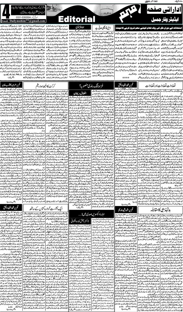 اخبار روزنامہ مہم 3 اکتوبر 2025 dailymuhim اکتوبر 3, 2025 About The Author dailymuhim See author's posts Continue Reading Previous: روزنامہ مہم 2 اکتوبر 2025Next: روزنامہ مہم 6 اکتوبر 2025 جواب دیں جواب منسوخ کریںآپ کا ای میل ایڈریس شائع نہیں کیا جائے گا۔ ضروری خانوں کو * سے نشان زد کیا گیا ہےتبصرہ * نام * ای میل * ویب سائٹ اس براؤزر میں میرا نام، ای میل، اور ویب سائٹ محفوظ رکھیں اگلی بار جب میں تبصرہ کرنے کےلیے۔ Related Stories روزنامہ مہم 27 نومبر 2025 اخبار روزنامہ مہم 27 نومبر 2025 نومبر 27, 2025 روزنامہ مہم 25 نومبر 2025 اخبار روزنامہ مہم 25 نومبر 2025 نومبر 25, 2025 روزنامہ مہم 24 نومبر 2025 اخبار روزنامہ مہم 24 نومبر 2025 نومبر 24, 2025