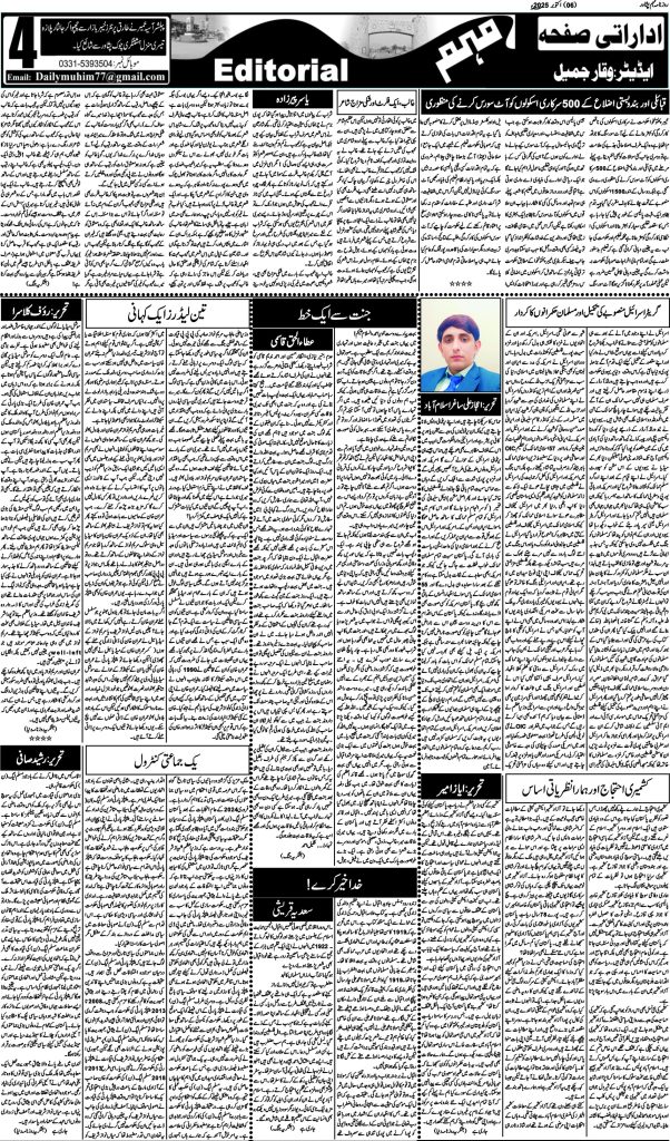 اخبار روزنامہ مہم 6 اکتوبر 2025 dailymuhim اکتوبر 6, 2025 About The Author dailymuhim See author's posts Continue Reading Previous: روزنامہ مہم 3 اکتوبر 2025Next: روزنامہ مہم 7 اکتوبر 2025 جواب دیں جواب منسوخ کریںآپ کا ای میل ایڈریس شائع نہیں کیا جائے گا۔ ضروری خانوں کو * سے نشان زد کیا گیا ہےتبصرہ * نام * ای میل * ویب سائٹ اس براؤزر میں میرا نام، ای میل، اور ویب سائٹ محفوظ رکھیں اگلی بار جب میں تبصرہ کرنے کےلیے۔ Related Stories روزنامہ مہم 27 نومبر 2025 اخبار روزنامہ مہم 27 نومبر 2025 نومبر 27, 2025 روزنامہ مہم 25 نومبر 2025 اخبار روزنامہ مہم 25 نومبر 2025 نومبر 25, 2025 روزنامہ مہم 24 نومبر 2025 اخبار روزنامہ مہم 24 نومبر 2025 نومبر 24, 2025