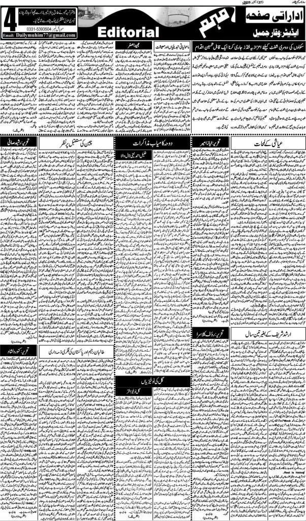 اخبار روزنامہ مہم 27 اکتوبر 2025 dailymuhim اکتوبر 27, 2025 About The Author dailymuhim See author's posts Continue Reading Previous: روزنامہ مہم 25 اکتوبر 2025Next: روزنامہ مہم 28 اکتوبر 2025 جواب دیں جواب منسوخ کریںآپ کا ای میل ایڈریس شائع نہیں کیا جائے گا۔ ضروری خانوں کو * سے نشان زد کیا گیا ہےتبصرہ * نام * ای میل * ویب سائٹ اس براؤزر میں میرا نام، ای میل، اور ویب سائٹ محفوظ رکھیں اگلی بار جب میں تبصرہ کرنے کےلیے۔ Related Stories روزنامہ مہم 19 جنوری 2026 اخبار روزنامہ مہم 19 جنوری 2026 جنوری 19, 2026 روزنامہ مہم 17 جنوری 2026 اخبار روزنامہ مہم 17 جنوری 2026 جنوری 18, 2026 روزنامہ مہم 15 جنوری 2026 اخبار روزنامہ مہم 15 جنوری 2026 جنوری 15, 2026