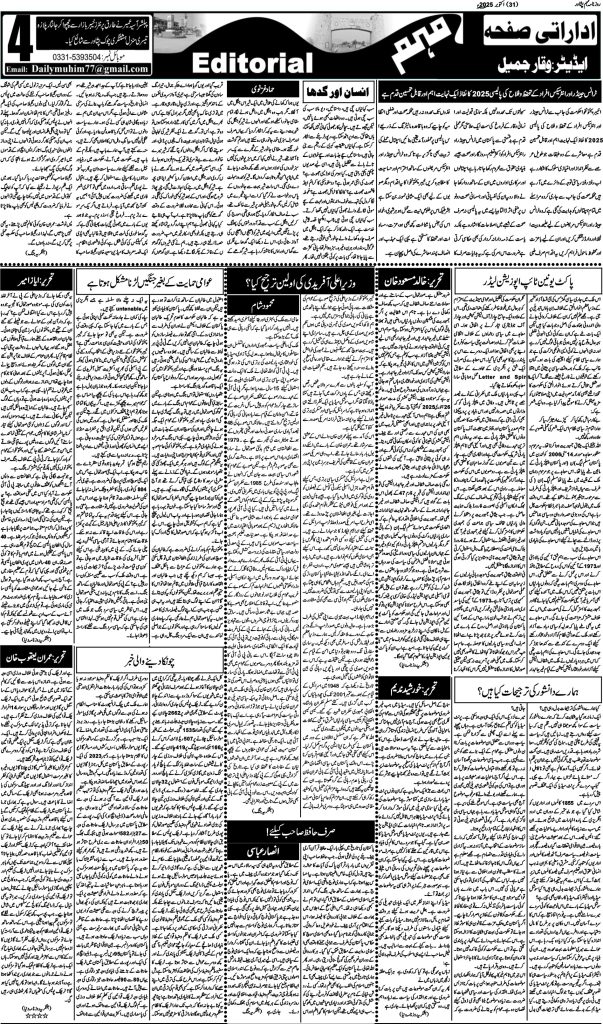اخبار روزنامہ مہم 31 اکتوبر 2025 dailymuhim اکتوبر 31, 2025 About The Author dailymuhim See author's posts Continue Reading Previous: روزنامہ مہم 30 اکتوبر 2025Next: روزنامہ مہم 1 اکتوبر 2025 جواب دیں جواب منسوخ کریںآپ کا ای میل ایڈریس شائع نہیں کیا جائے گا۔ ضروری خانوں کو * سے نشان زد کیا گیا ہےتبصرہ * نام * ای میل * ویب سائٹ اس براؤزر میں میرا نام، ای میل، اور ویب سائٹ محفوظ رکھیں اگلی بار جب میں تبصرہ کرنے کےلیے۔ Related Stories روزنامہ مہم 19 جنوری 2026 اخبار روزنامہ مہم 19 جنوری 2026 جنوری 19, 2026 روزنامہ مہم 17 جنوری 2026 اخبار روزنامہ مہم 17 جنوری 2026 جنوری 18, 2026 روزنامہ مہم 15 جنوری 2026 اخبار روزنامہ مہم 15 جنوری 2026 جنوری 15, 2026