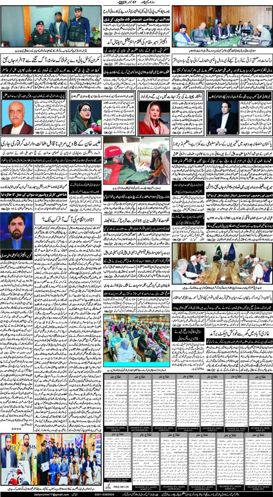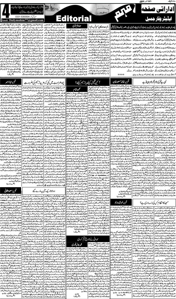 اخبار روزنامہ مہم 7 نومبر 2025 dailymuhim نومبر 7, 2025 About The Author dailymuhim See author's posts Continue Reading Previous: روزنامہ مہم 6 اکتوبر 2025Next: روزنامہ مہم 8 نومبر 2025 جواب دیں جواب منسوخ کریںآپ کا ای میل ایڈریس شائع نہیں کیا جائے گا۔ ضروری خانوں کو * سے نشان زد کیا گیا ہےتبصرہ * نام * ای میل * ویب سائٹ اس براؤزر میں میرا نام، ای میل، اور ویب سائٹ محفوظ رکھیں اگلی بار جب میں تبصرہ کرنے کےلیے۔ Related Stories روزنامہ مہم 27 نومبر 2025 اخبار روزنامہ مہم 27 نومبر 2025 نومبر 27, 2025 روزنامہ مہم 25 نومبر 2025 اخبار روزنامہ مہم 25 نومبر 2025 نومبر 25, 2025 روزنامہ مہم 24 نومبر 2025 اخبار روزنامہ مہم 24 نومبر 2025 نومبر 24, 2025