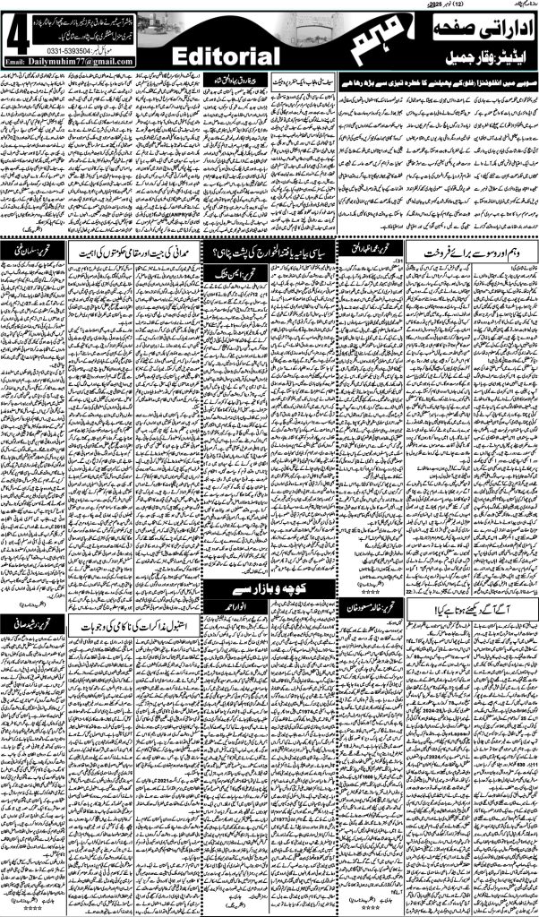 اخبار روزنامہ مہم 12 نو مبر 2025 dailymuhim نومبر 12, 2025 About The Author dailymuhim See author's posts Continue Reading Previous: روزنامہ مہم 10 نومبر 2025Next: روزنامہ مہم 14 نومبر 2025 جواب دیں جواب منسوخ کریںآپ کا ای میل ایڈریس شائع نہیں کیا جائے گا۔ ضروری خانوں کو * سے نشان زد کیا گیا ہےتبصرہ * نام * ای میل * ویب سائٹ اس براؤزر میں میرا نام، ای میل، اور ویب سائٹ محفوظ رکھیں اگلی بار جب میں تبصرہ کرنے کےلیے۔ Related Stories روزنامہ مہم 27 نومبر 2025 اخبار روزنامہ مہم 27 نومبر 2025 نومبر 27, 2025 روزنامہ مہم 25 نومبر 2025 اخبار روزنامہ مہم 25 نومبر 2025 نومبر 25, 2025 روزنامہ مہم 24 نومبر 2025 اخبار روزنامہ مہم 24 نومبر 2025 نومبر 24, 2025