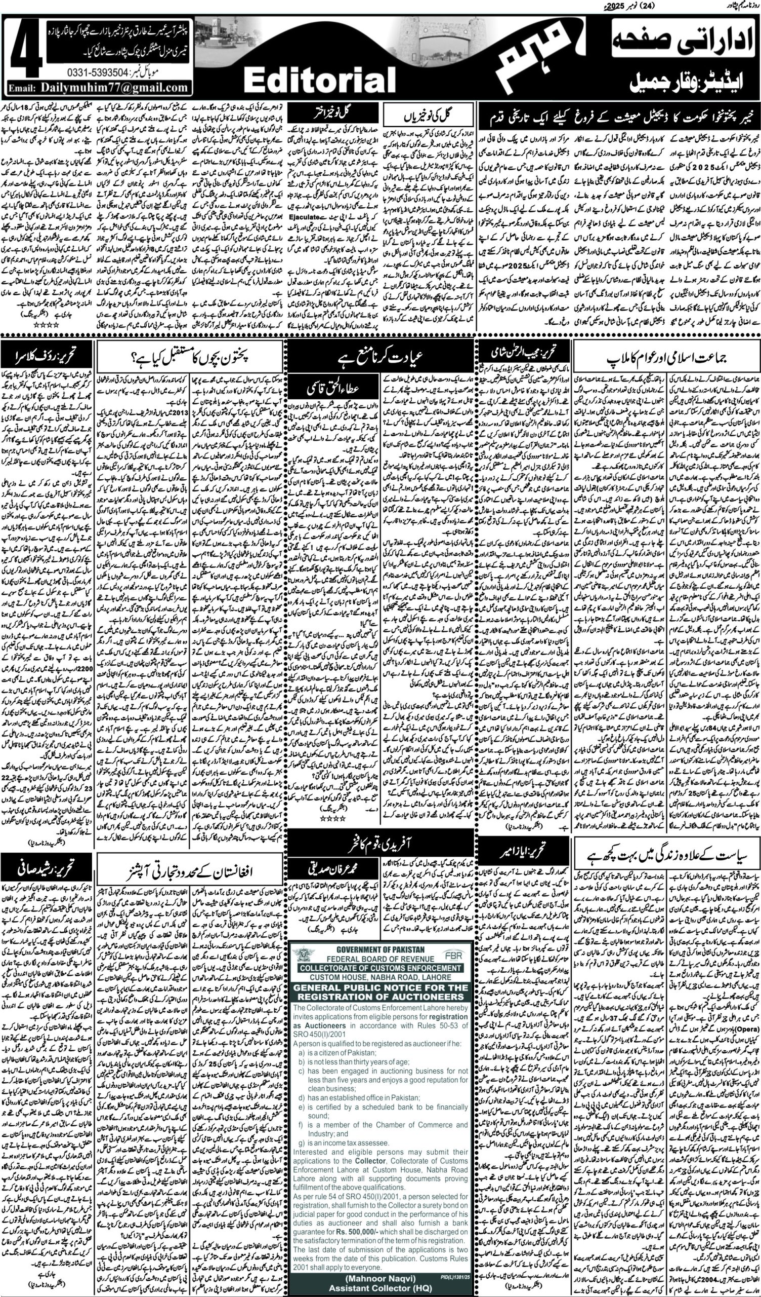 اخبار روزنامہ مہم 24 نومبر 2025 dailymuhim نومبر 24, 2025 About The Author dailymuhim See author's posts Continue Reading Previous: روزنامہ مہم 21 نومبر 2025Next: روزنامہ مہم 25 نومبر 2025 جواب دیں جواب منسوخ کریںآپ کا ای میل ایڈریس شائع نہیں کیا جائے گا۔ ضروری خانوں کو * سے نشان زد کیا گیا ہےتبصرہ * نام * ای میل * ویب سائٹ اس براؤزر میں میرا نام، ای میل، اور ویب سائٹ محفوظ رکھیں اگلی بار جب میں تبصرہ کرنے کےلیے۔ Related Stories روزنامہ مہم 27 نومبر 2025 اخبار روزنامہ مہم 27 نومبر 2025 نومبر 27, 2025 روزنامہ مہم 25 نومبر 2025 اخبار روزنامہ مہم 25 نومبر 2025 نومبر 25, 2025 روزنامہ مہم 21 نومبر 2025 اخبار روزنامہ مہم 21 نومبر 2025 نومبر 21, 2025