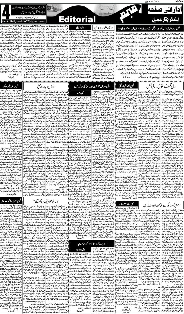 اخبار روزنامہ مہم 12 دسمبر 2025 dailymuhim دسمبر 12, 2025 About The Author dailymuhim See author's posts Continue Reading Previous: روزنامہ مہم 11 دسمبر 2025Next: روزنامہ مہم 13 دسمبر 2025 جواب دیں جواب منسوخ کریںآپ کا ای میل ایڈریس شائع نہیں کیا جائے گا۔ ضروری خانوں کو * سے نشان زد کیا گیا ہےتبصرہ * نام * ای میل * ویب سائٹ اس براؤزر میں میرا نام، ای میل، اور ویب سائٹ محفوظ رکھیں اگلی بار جب میں تبصرہ کرنے کےلیے۔ Related Stories روزنامہ مہم 19 جنوری 2026 اخبار روزنامہ مہم 19 جنوری 2026 جنوری 19, 2026 روزنامہ مہم 17 جنوری 2026 اخبار روزنامہ مہم 17 جنوری 2026 جنوری 18, 2026 روزنامہ مہم 15 جنوری 2026 اخبار روزنامہ مہم 15 جنوری 2026 جنوری 15, 2026