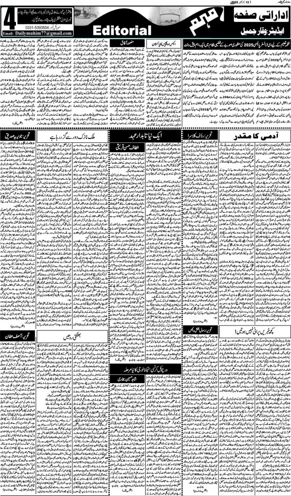 اخبار روزنامہ مہم 13 دسمبر 2025 dailymuhim دسمبر 13, 2025 About The Author dailymuhim See author's posts Continue Reading Previous: روزنامہ مہم 12 دسمبر 2025Next: روزنامہ مہم 14 دسمبر 2025 جواب دیں جواب منسوخ کریںآپ کا ای میل ایڈریس شائع نہیں کیا جائے گا۔ ضروری خانوں کو * سے نشان زد کیا گیا ہےتبصرہ * نام * ای میل * ویب سائٹ اس براؤزر میں میرا نام، ای میل، اور ویب سائٹ محفوظ رکھیں اگلی بار جب میں تبصرہ کرنے کےلیے۔ Related Stories روزنامہ مہم 19 جنوری 2026 اخبار روزنامہ مہم 19 جنوری 2026 جنوری 19, 2026 روزنامہ مہم 17 جنوری 2026 اخبار روزنامہ مہم 17 جنوری 2026 جنوری 18, 2026 روزنامہ مہم 15 جنوری 2026 اخبار روزنامہ مہم 15 جنوری 2026 جنوری 15, 2026