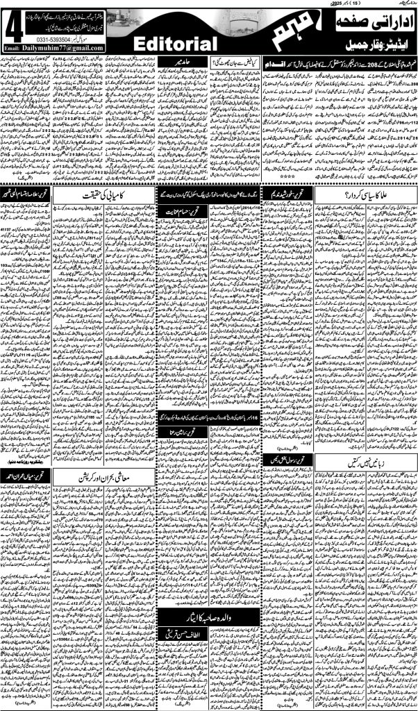اخبار روزنامہ مہم 16 دسمبر 2025 dailymuhim دسمبر 16, 2025 About The Author dailymuhim See author's posts Continue Reading Previous: روزنامہ مہم 14 دسمبر 2025Next: روزنامہ مہم 17 دسمبر 2025 جواب دیں جواب منسوخ کریںآپ کا ای میل ایڈریس شائع نہیں کیا جائے گا۔ ضروری خانوں کو * سے نشان زد کیا گیا ہےتبصرہ * نام * ای میل * ویب سائٹ اس براؤزر میں میرا نام، ای میل، اور ویب سائٹ محفوظ رکھیں اگلی بار جب میں تبصرہ کرنے کےلیے۔ Related Stories روزنامہ مہم 19 جنوری 2026 اخبار روزنامہ مہم 19 جنوری 2026 جنوری 19, 2026 روزنامہ مہم 17 جنوری 2026 اخبار روزنامہ مہم 17 جنوری 2026 جنوری 18, 2026 روزنامہ مہم 15 جنوری 2026 اخبار روزنامہ مہم 15 جنوری 2026 جنوری 15, 2026