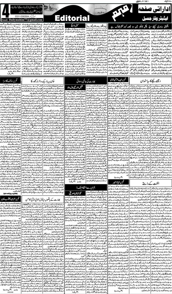 اخبار روزنامہ مہم 22 دسمبر 2025 dailymuhim دسمبر 22, 2025 About The Author dailymuhim See author's posts Continue Reading Previous: روزنامہ مہم 20 دسمبر 2025Next: روزنامہ مہم 23 دسمبر 2025 جواب دیں جواب منسوخ کریںآپ کا ای میل ایڈریس شائع نہیں کیا جائے گا۔ ضروری خانوں کو * سے نشان زد کیا گیا ہےتبصرہ * نام * ای میل * ویب سائٹ اس براؤزر میں میرا نام، ای میل، اور ویب سائٹ محفوظ رکھیں اگلی بار جب میں تبصرہ کرنے کےلیے۔ Related Stories روزنامہ مہم 19 جنوری 2026 اخبار روزنامہ مہم 19 جنوری 2026 جنوری 19, 2026 روزنامہ مہم 17 جنوری 2026 اخبار روزنامہ مہم 17 جنوری 2026 جنوری 18, 2026 روزنامہ مہم 15 جنوری 2026 اخبار روزنامہ مہم 15 جنوری 2026 جنوری 15, 2026