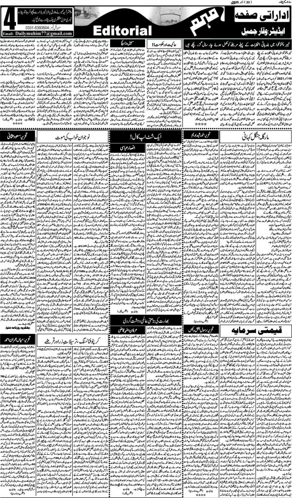 اخبار روزنامہ مہم 23 دسمبر 2025 dailymuhim دسمبر 23, 2025 About The Author dailymuhim See author's posts Continue Reading Previous: روزنامہ مہم 22 دسمبر 2025Next: روزنامہ مہم 24 دسمبر 2025 جواب دیں جواب منسوخ کریںآپ کا ای میل ایڈریس شائع نہیں کیا جائے گا۔ ضروری خانوں کو * سے نشان زد کیا گیا ہےتبصرہ * نام * ای میل * ویب سائٹ اس براؤزر میں میرا نام، ای میل، اور ویب سائٹ محفوظ رکھیں اگلی بار جب میں تبصرہ کرنے کےلیے۔ Related Stories روزنامہ مہم 19 جنوری 2026 اخبار روزنامہ مہم 19 جنوری 2026 جنوری 19, 2026 روزنامہ مہم 17 جنوری 2026 اخبار روزنامہ مہم 17 جنوری 2026 جنوری 18, 2026 روزنامہ مہم 15 جنوری 2026 اخبار روزنامہ مہم 15 جنوری 2026 جنوری 15, 2026