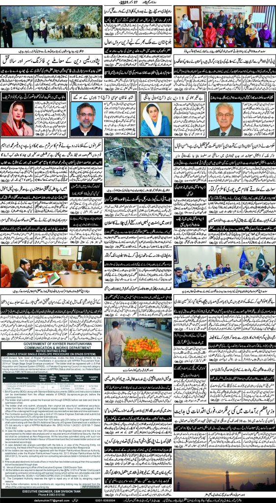 اخبار روزنامہ مہم 27 دسمبر 2025 dailymuhim دسمبر 27, 2025 About The Author dailymuhim See author's posts Continue Reading Previous: روزنامہ مہم 26 دسمبر 2025Next: روزنامہ مہم 30 دسمبر 2025 جواب دیں جواب منسوخ کریںآپ کا ای میل ایڈریس شائع نہیں کیا جائے گا۔ ضروری خانوں کو * سے نشان زد کیا گیا ہےتبصرہ * نام * ای میل * ویب سائٹ اس براؤزر میں میرا نام، ای میل، اور ویب سائٹ محفوظ رکھیں اگلی بار جب میں تبصرہ کرنے کےلیے۔ Related Stories روزنامہ مہم 19 جنوری 2026 اخبار روزنامہ مہم 19 جنوری 2026 جنوری 19, 2026 روزنامہ مہم 17 جنوری 2026 اخبار روزنامہ مہم 17 جنوری 2026 جنوری 18, 2026 روزنامہ مہم 15 جنوری 2026 اخبار روزنامہ مہم 15 جنوری 2026 جنوری 15, 2026