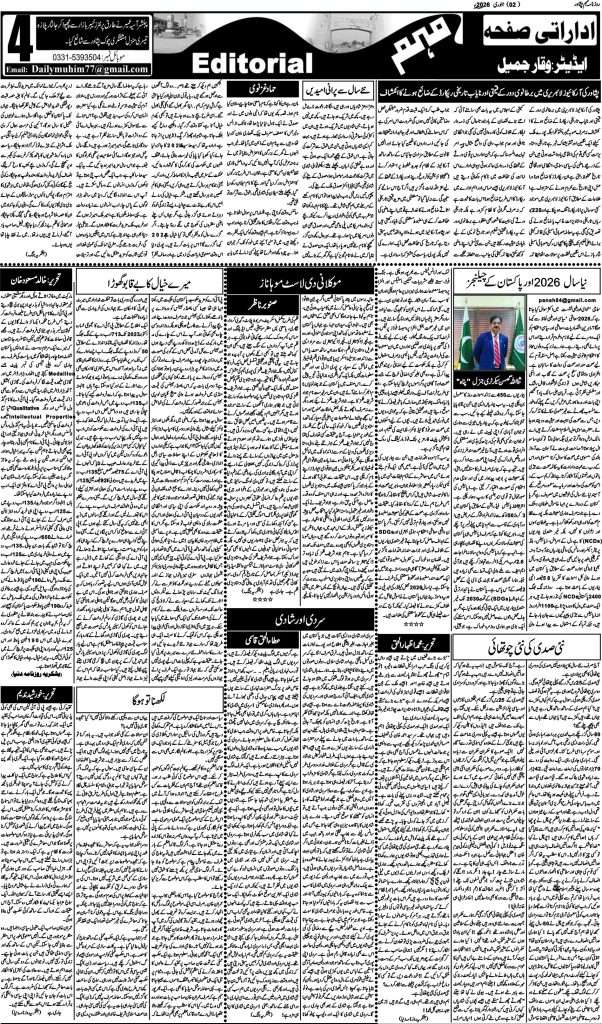 اخبار روزنامہ مہم 2 جنوری 2026 dailymuhim جنوری 3, 2026 About The Author dailymuhim See author's posts Continue Reading Previous: روزنامہ مہم 1 جنوری 2026Next: روزنامہ مہم 3 جنوری 2026 جواب دیں جواب منسوخ کریںآپ کا ای میل ایڈریس شائع نہیں کیا جائے گا۔ ضروری خانوں کو * سے نشان زد کیا گیا ہےتبصرہ * نام * ای میل * ویب سائٹ اس براؤزر میں میرا نام، ای میل، اور ویب سائٹ محفوظ رکھیں اگلی بار جب میں تبصرہ کرنے کےلیے۔ Related Stories روزنامہ مہم 19 جنوری 2026 اخبار روزنامہ مہم 19 جنوری 2026 جنوری 19, 2026 روزنامہ مہم 17 جنوری 2026 اخبار روزنامہ مہم 17 جنوری 2026 جنوری 18, 2026 روزنامہ مہم 15 جنوری 2026 اخبار روزنامہ مہم 15 جنوری 2026 جنوری 15, 2026