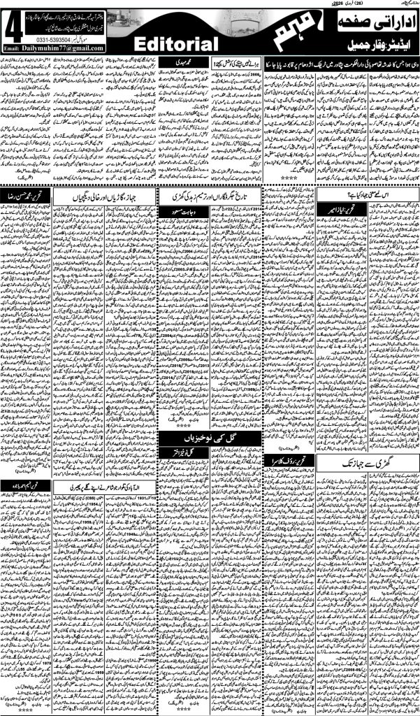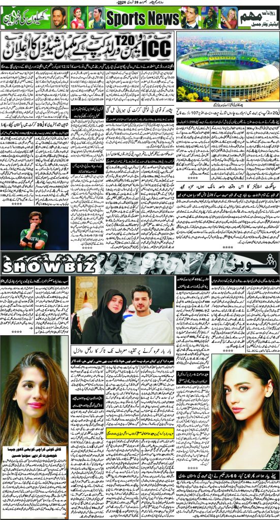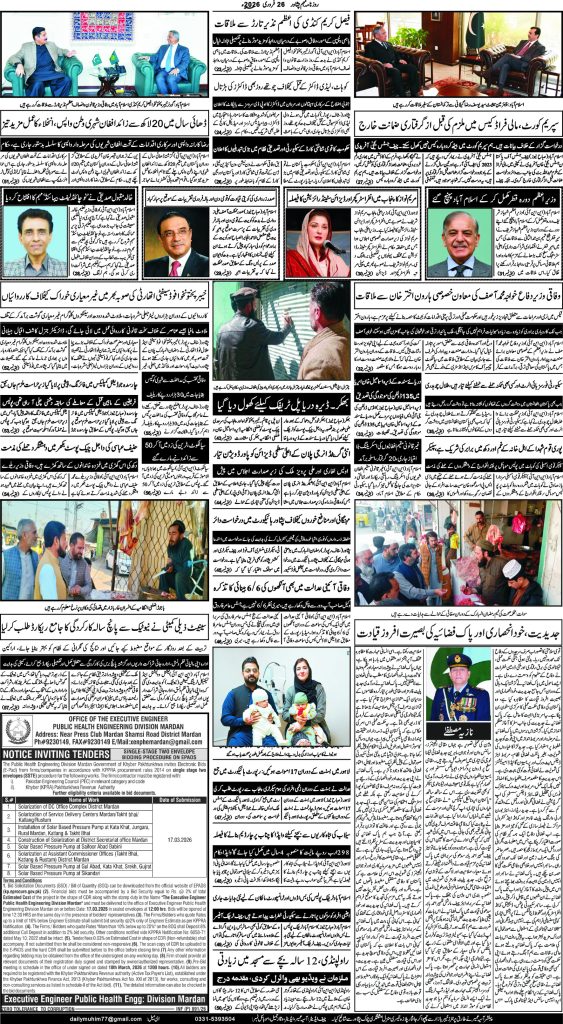 اخبار روزنامہ مہم 26 فروری 2026 dailymuhim فروری 26, 2026 About The Author dailymuhim See author's posts Continue Reading Previous: روزنامہ مہم 25 فروری 2026 جواب دیں جواب منسوخ کریںآپ کا ای میل ایڈریس شائع نہیں کیا جائے گا۔ ضروری خانوں کو * سے نشان زد کیا گیا ہےتبصرہ * نام * ای میل * ویب سائٹ اس براؤزر میں میرا نام، ای میل، اور ویب سائٹ محفوظ رکھیں اگلی بار جب میں تبصرہ کرنے کےلیے۔ Related Stories روزنامہ مہم 25 فروری 2026 اخبار روزنامہ مہم 25 فروری 2026 فروری 25, 2026 روزنامہ مہم 24 فروری 2026 اخبار روزنامہ مہم 24 فروری 2026 فروری 24, 2026 روزنامہ مہم 23 فروری 2026 اخبار روزنامہ مہم 23 فروری 2026 فروری 23, 2026