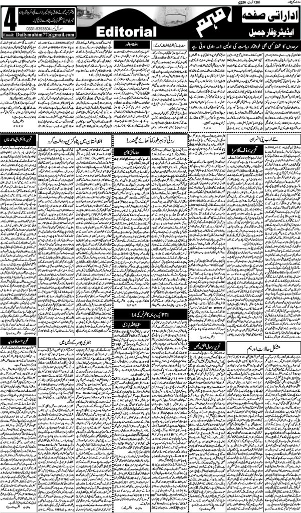 اخبار روزنامہ مہم 28 فروری 2026 dailymuhim فروری 28, 2026 About The Author dailymuhim See author's posts Continue Reading Previous: روزنامہ مہم 27 فروری 2026 جواب دیں جواب منسوخ کریںآپ کا ای میل ایڈریس شائع نہیں کیا جائے گا۔ ضروری خانوں کو * سے نشان زد کیا گیا ہےتبصرہ * نام * ای میل * ویب سائٹ اس براؤزر میں میرا نام، ای میل، اور ویب سائٹ محفوظ رکھیں اگلی بار جب میں تبصرہ کرنے کےلیے۔ Related Stories روزنامہ مہم 27 فروری 2026 اخبار روزنامہ مہم 27 فروری 2026 فروری 27, 2026 روزنامہ مہم 26 فروری 2026 اخبار روزنامہ مہم 26 فروری 2026 فروری 26, 2026 روزنامہ مہم 25 فروری 2026 اخبار روزنامہ مہم 25 فروری 2026 فروری 25, 2026