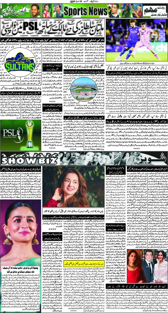 اخبار روزنامہ مہم 5 مارچ 2026 dailymuhim مارچ 5, 2026 About The Author dailymuhim See author's posts Continue Reading Previous: روزنامہ مہم 3 مارچ 2026Next: روزنامہ مہم 4 مارچ 2026 جواب دیں جواب منسوخ کریںآپ کا ای میل ایڈریس شائع نہیں کیا جائے گا۔ ضروری خانوں کو * سے نشان زد کیا گیا ہےتبصرہ * نام * ای میل * ویب سائٹ اس براؤزر میں میرا نام، ای میل، اور ویب سائٹ محفوظ رکھیں اگلی بار جب میں تبصرہ کرنے کےلیے۔ Related Stories روزنامہ مہم 18 اپریل 2026 اخبار روزنامہ مہم 18 اپریل 2026 اپریل 18, 2026 روزنامہ مہم 17 اپریل 2026 اخبار روزنامہ مہم 17 اپریل 2026 اپریل 17, 2026 روزنامہ مہم 16 اپریل 2026 اخبار روزنامہ مہم 16 اپریل 2026 اپریل 16, 2026