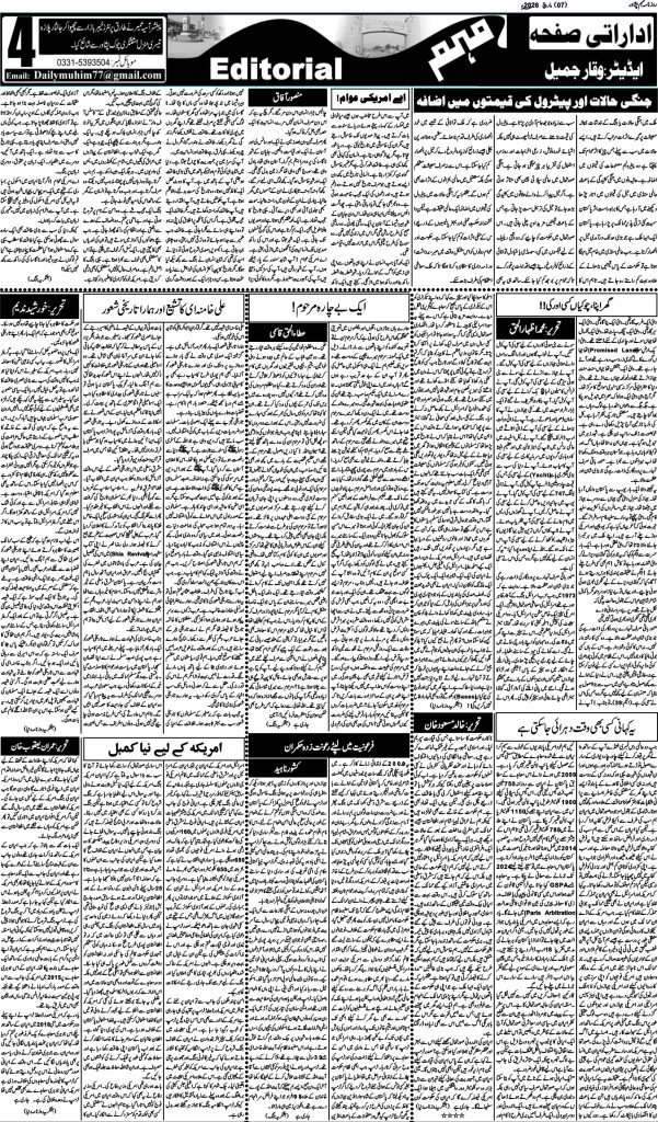 اخبار روزنامہ مہم 7 مارچ 2026 dailymuhim مارچ 7, 2026 About The Author dailymuhim See author's posts Continue Reading Previous: روزنامہ مہم 6 مارچ 2026 جواب دیں جواب منسوخ کریںآپ کا ای میل ایڈریس شائع نہیں کیا جائے گا۔ ضروری خانوں کو * سے نشان زد کیا گیا ہےتبصرہ * نام * ای میل * ویب سائٹ اس براؤزر میں میرا نام، ای میل، اور ویب سائٹ محفوظ رکھیں اگلی بار جب میں تبصرہ کرنے کےلیے۔ Related Stories روزنامہ مہم 6 مارچ 2026 اخبار روزنامہ مہم 6 مارچ 2026 مارچ 6, 2026 روزنامہ مہم 4 مارچ 2026 اخبار روزنامہ مہم 4 مارچ 2026 مارچ 5, 2026 روزنامہ مہم 5 مارچ 2026 اخبار روزنامہ مہم 5 مارچ 2026 مارچ 5, 2026