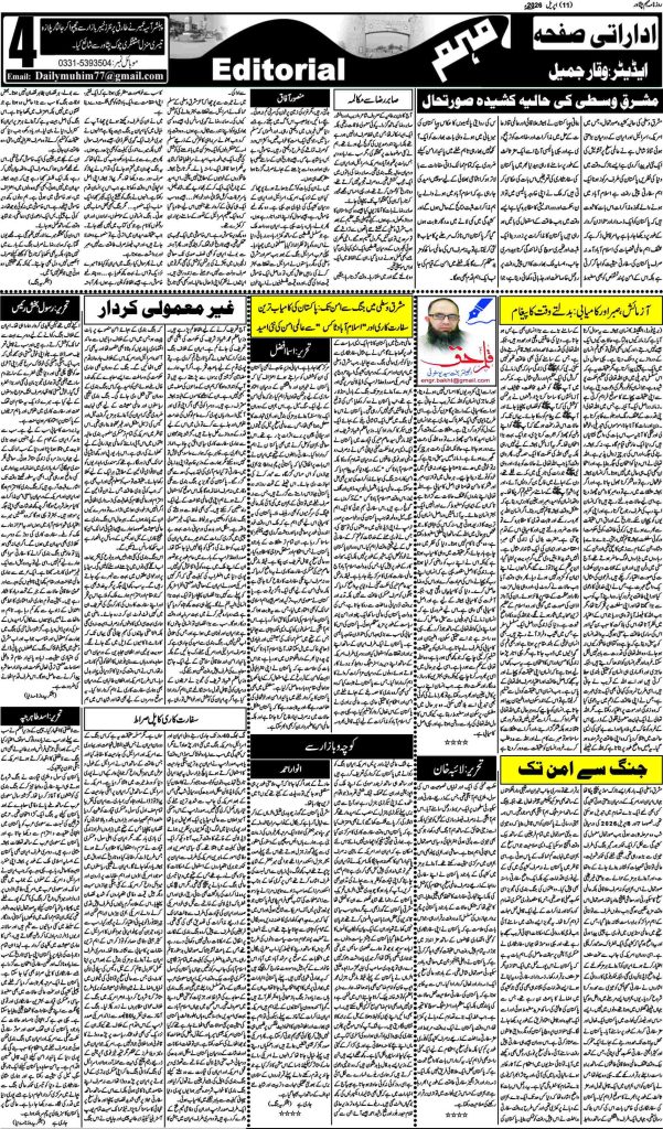 اخبار روزنامہ مہم 11 اپریل 2026 dailymuhim اپریل 11, 2026 About The Author dailymuhim See author's posts Continue Reading Previous: روزنامہ مہم 10 اپریل 2026 جواب دیں جواب منسوخ کریںآپ کا ای میل ایڈریس شائع نہیں کیا جائے گا۔ ضروری خانوں کو * سے نشان زد کیا گیا ہےتبصرہ * نام * ای میل * ویب سائٹ اس براؤزر میں میرا نام، ای میل، اور ویب سائٹ محفوظ رکھیں اگلی بار جب میں تبصرہ کرنے کےلیے۔ Related Stories روزنامہ مہم 10 اپریل 2026 اخبار روزنامہ مہم 10 اپریل 2026 اپریل 11, 2026 روزنامہ مہم 9 اپریل 2026 اخبار روزنامہ مہم 9 اپریل 2026 اپریل 9, 2026 روزنامہ مہم 8 اپریل 2026 اخبار روزنامہ مہم 8 اپریل 2026 اپریل 9, 2026