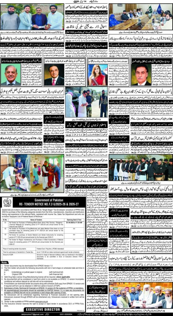 اخبار روزنامہ مہم 14 اپریل 2026 dailymuhim اپریل 14, 2026 About The Author dailymuhim See author's posts Continue Reading Previous: روزنامہ مہم 13 اپریل 2026 جواب دیں جواب منسوخ کریںآپ کا ای میل ایڈریس شائع نہیں کیا جائے گا۔ ضروری خانوں کو * سے نشان زد کیا گیا ہےتبصرہ * نام * ای میل * ویب سائٹ اس براؤزر میں میرا نام، ای میل، اور ویب سائٹ محفوظ رکھیں اگلی بار جب میں تبصرہ کرنے کےلیے۔ Related Stories روزنامہ مہم 13 اپریل 2026 اخبار روزنامہ مہم 13 اپریل 2026 اپریل 13, 2026 روزنامہ مہم 11 اپریل 2026 اخبار روزنامہ مہم 11 اپریل 2026 اپریل 11, 2026 روزنامہ مہم 10 اپریل 2026 اخبار روزنامہ مہم 10 اپریل 2026 اپریل 11, 2026