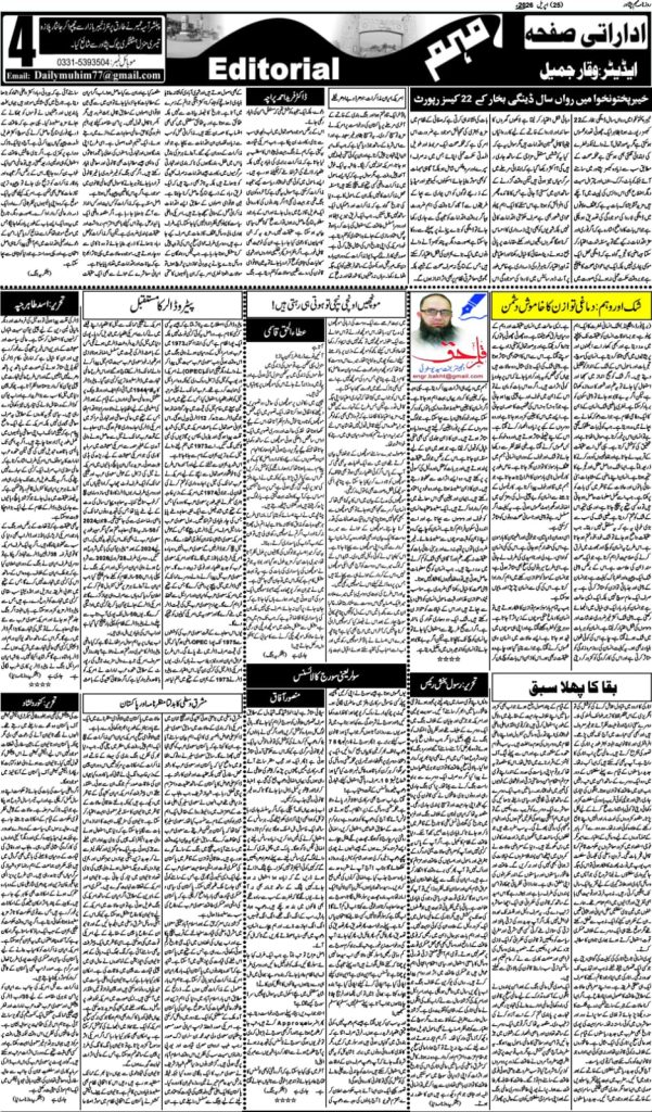 اخبار روزنامہ مہم 25 اپریل 2026 dailymuhim اپریل 25, 2026 About The Author dailymuhim See author's posts Continue Reading Previous: روزنامہ مہم 24 اپریل 2026 جواب دیں جواب منسوخ کریںآپ کا ای میل ایڈریس شائع نہیں کیا جائے گا۔ ضروری خانوں کو * سے نشان زد کیا گیا ہےتبصرہ * نام * ای میل * ویب سائٹ اس براؤزر میں میرا نام، ای میل، اور ویب سائٹ محفوظ رکھیں اگلی بار جب میں تبصرہ کرنے کےلیے۔ Related Stories روزنامہ مہم 24 اپریل 2026 اخبار روزنامہ مہم 24 اپریل 2026 اپریل 24, 2026 روزنامہ مہم 23 اپریل 2026 اخبار روزنامہ مہم 23 اپریل 2026 اپریل 23, 2026 روزنامہ مہم 22 اپریل 2026 اخبار روزنامہ مہم 22 اپریل 2026 اپریل 22, 2026